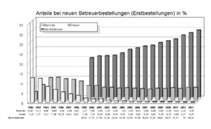 Da die meisten ehrenamtlichen Betreuer lediglich eine Betreuung führen, kann man davon ausgehen, dass in der Bundesrepublik Deutschland mehr als 700.000 Menschen als ehrenamtliche Betreuer bestellt sind. Ihnen gegenüber stehen rund 17.000 Berufsbetreuer, die selbstständig oder als Beschäftigte in Betreuungsvereinen und Betreuungsbehörden tätig sind und die Ihrerseits rund 600.000 Betreuungen beruflich führen.