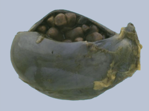 - Entstehung von Gallensteinen: Kristalle -> Gries -> Steine